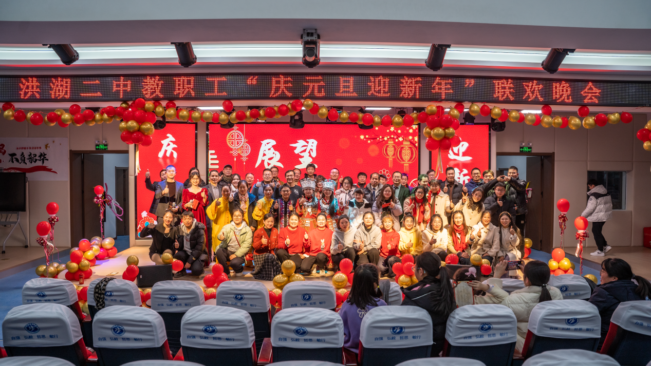 12月29日,洪湖市第二中学举办教职工“庆元旦 迎新年”联欢晚会,全体教职员工齐聚一堂,共贺新年。